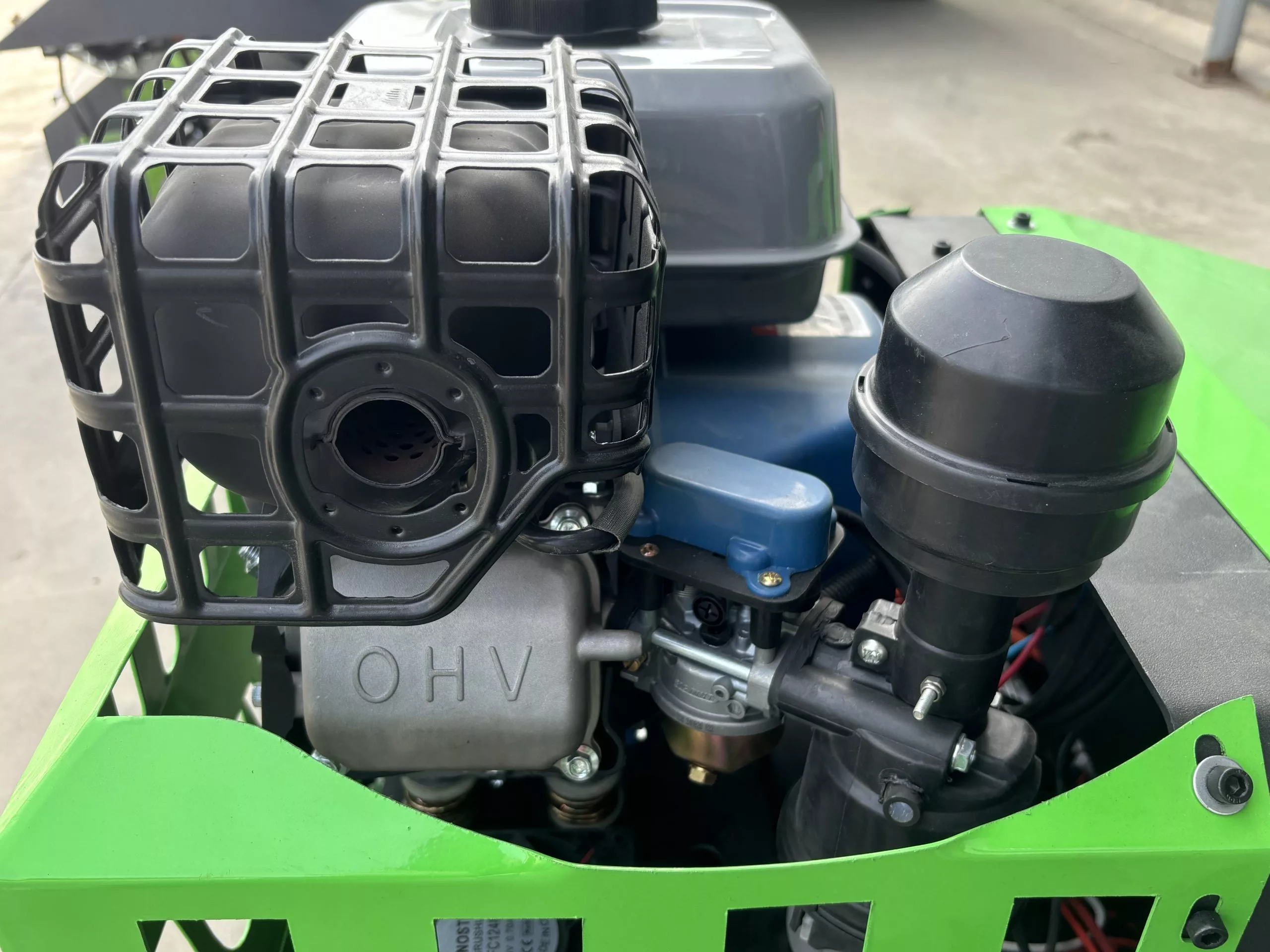 Das Herzstück des H-800J bildet ein robuster Benzinmotor des renommierten Herstellers Loncin. Dieser Motor erzeugt über einen integrierten Generator die elektrische Leistung, die sowohl die Antriebsmotoren für die Mäheinheit als auch die Antriebsmotoren für den Kettenantrieb versorgt. Beide Antriebseinheiten verfügen über eine beeindruckende Leistung von insgesamt 3,0 kW. Diese intelligente Kombination aus Benzinmotor und Elektromotoren garantiert eine zuverlässige Performance, selbst wenn es darum geht, dichtes und hohes Gras mühelos zu durchdringen. Der elektrische Starter sorgt zudem für einen komfortablen und schnellen Start auf Knopfdruck, sodass Sie sofort mit der Arbeit beginnen können.